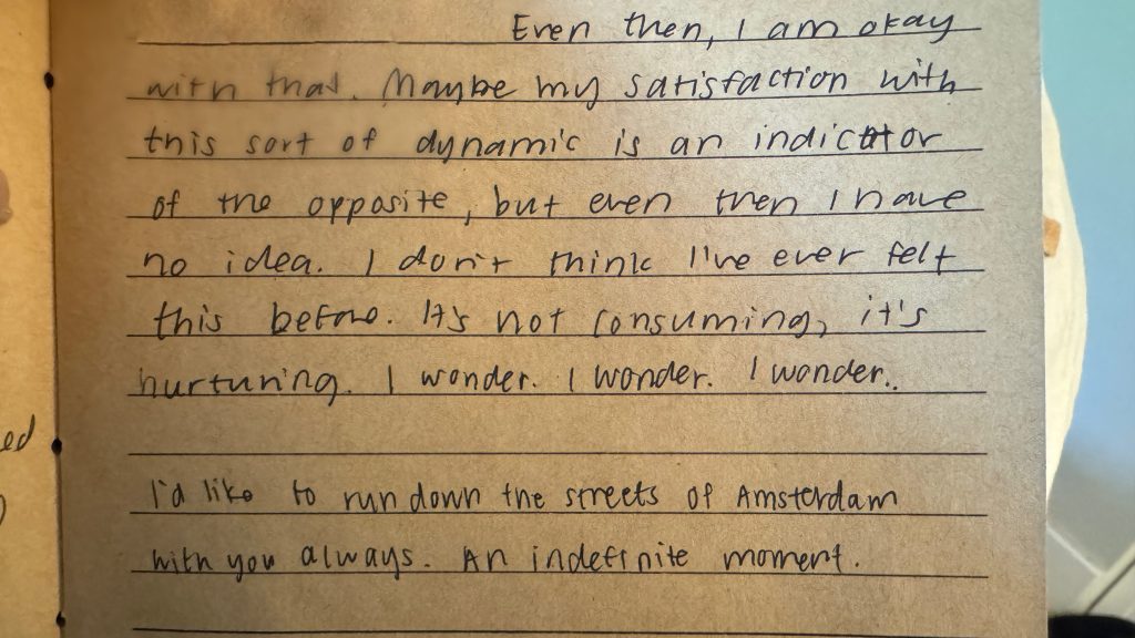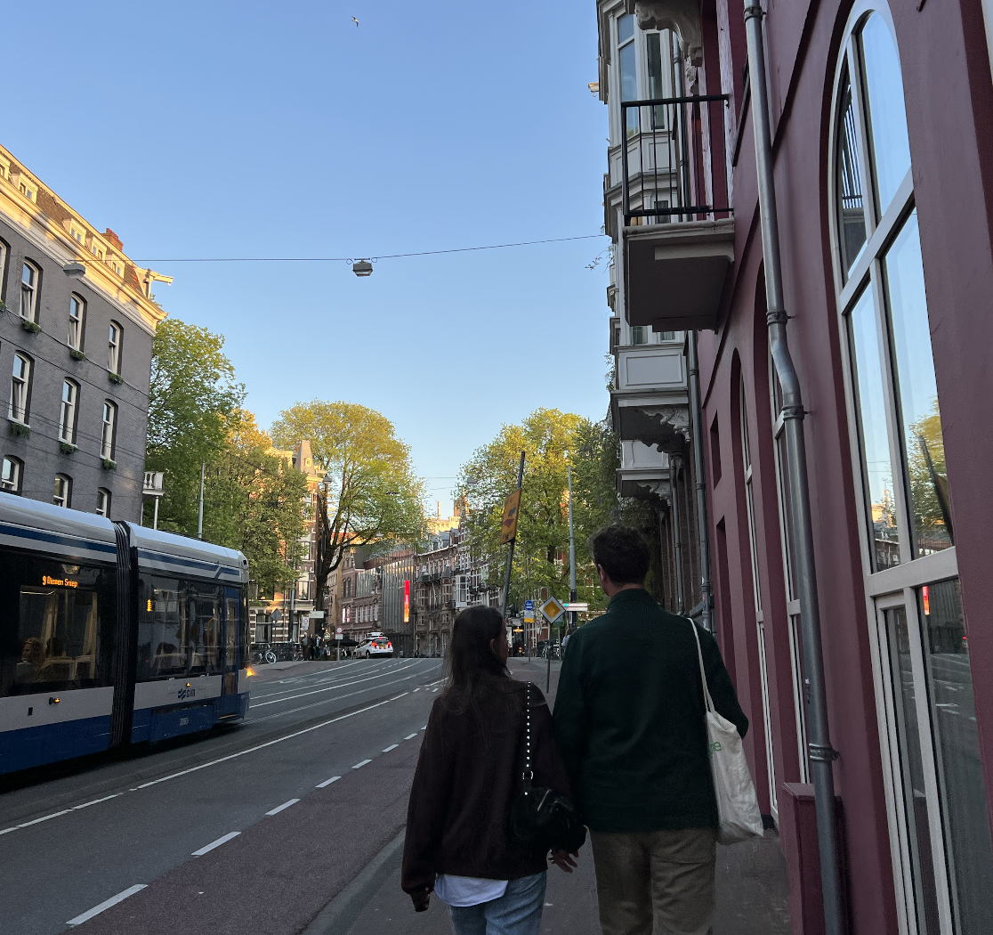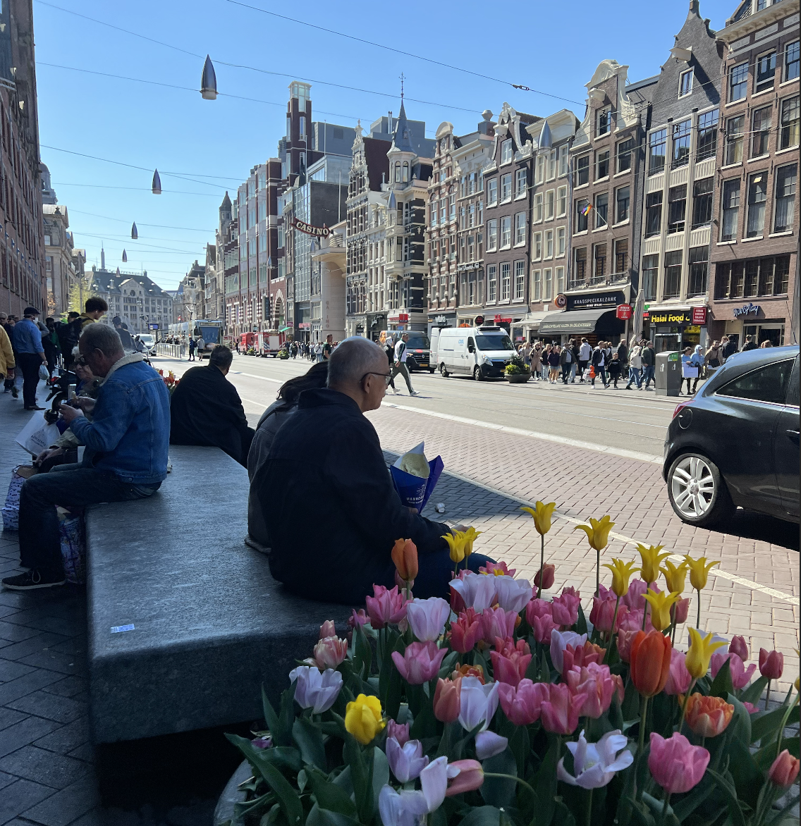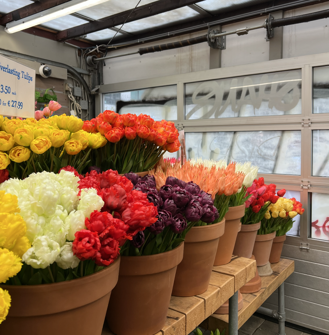 flying in, being picked up by J and BJ at the train station, going to convention center to meet the others, walking down the wider streets, seeing Dutch tulips for the first time, canal fascination, stumbling upon a flower shop, feeling refreshed and renewed (after all, I left Chicago in the middle of the quarter to go to Europe!), dinner at a random steakhouse that had incredibly slow but typical European service, night stroll along the canals, soft/gentle/delicate feeling, perhaps the first time I felt relaxed since I began college..